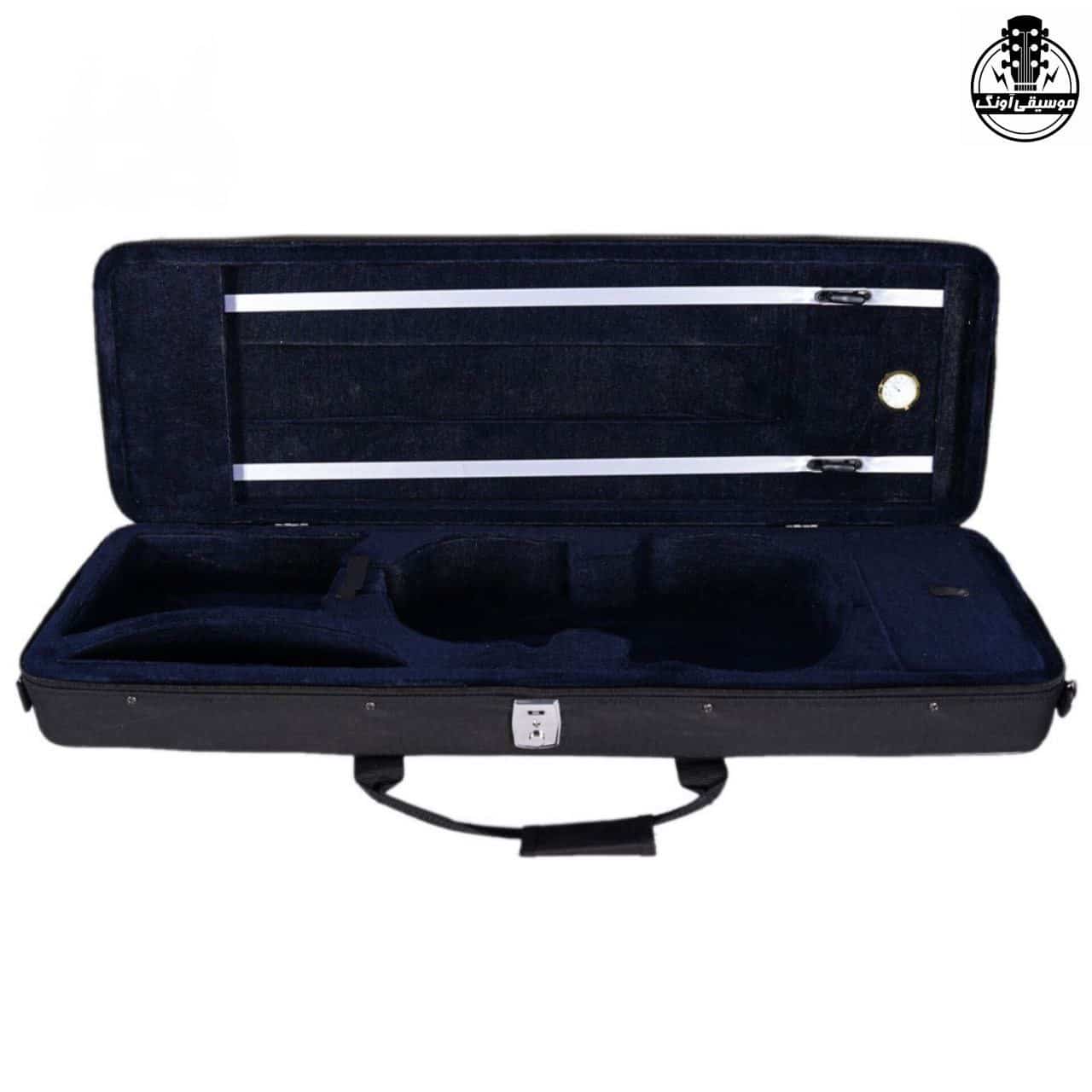 فضای داخلی هاردکیس، با پارچه‌ی مخملی ضدخش و ضد‌رطوبت پوشیده شده تا بدنه‌ی ویولن در تماس مستقیم با سطوح نرم قرار گیرد و احتمال خراشیدگی یا تغییر رنگ از بین برود. درون این کیس، جایگاه اختصاصی برای ویولن سایز ۴/۴ در نظر گرفته شده که با انحنای دقیق، فیت کامل بدنه‌ی ساز را تضمین می‌کند.